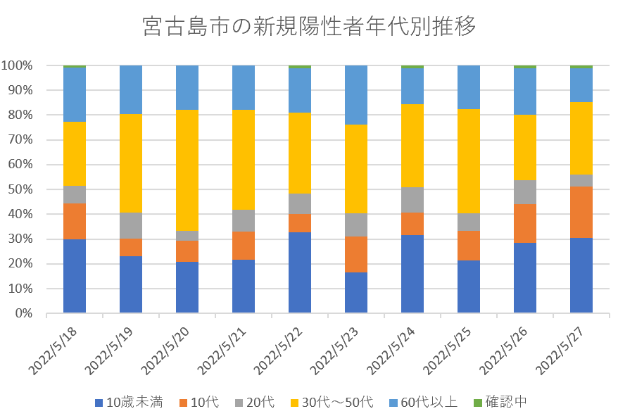 宮古島市の新規陽性者年代別内訳