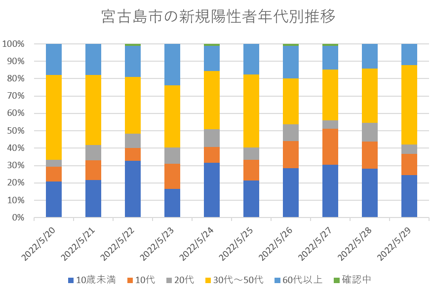宮古島市の新規陽性者年代別内訳