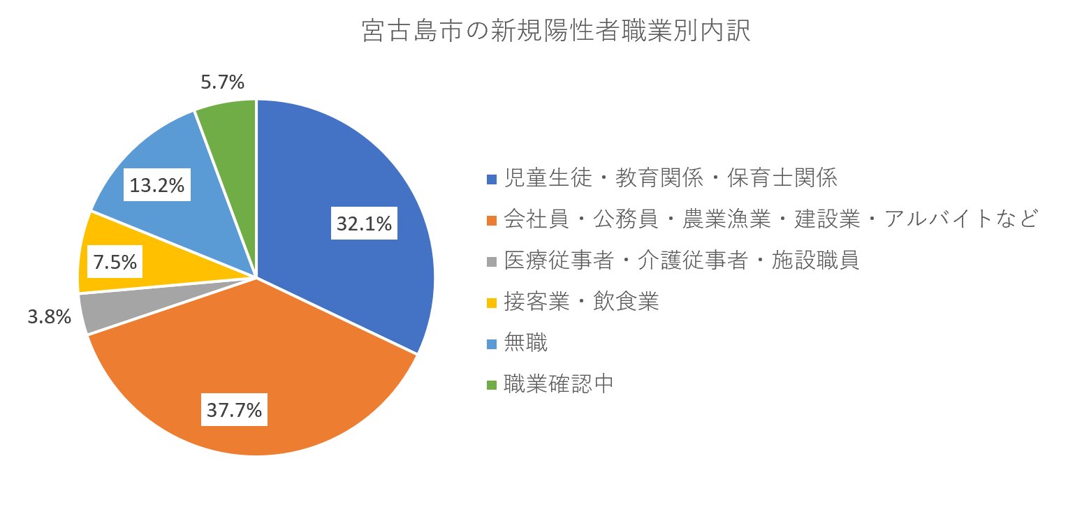 【速報・新型コロナ】1日、宮古島市の新規陽性者年代・職業別内訳