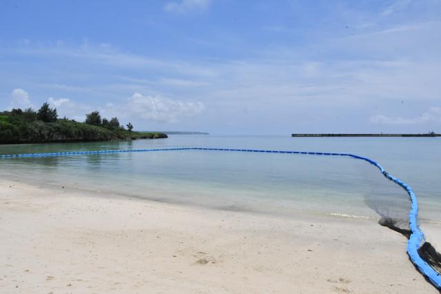 本格的な海水浴シーズンの到来となり、市民、観光客らが海に出入りする機会が増えることから市都市計画課はこのほど、パイナガマビーチにハブクラゲ侵入防止ネットを設置した。