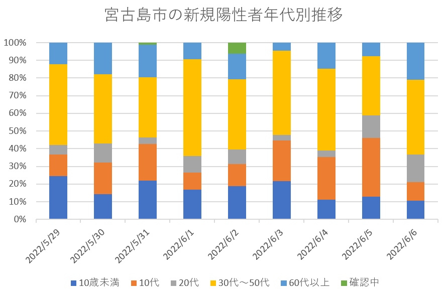 宮古島市の新規陽性者年代別内訳
