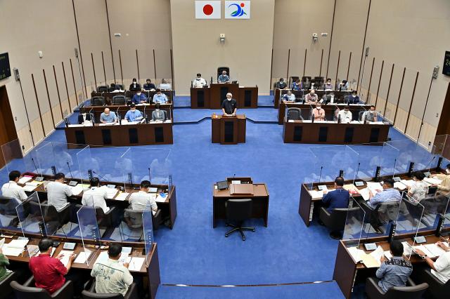 市議会(上地廣敏議長)の6月定例会が9日に開会した。今定例会には2022年度一般会計予算を約9億円増額させる補正予算案など合計22議案が提案された。