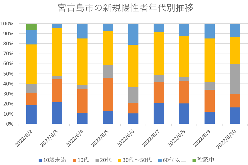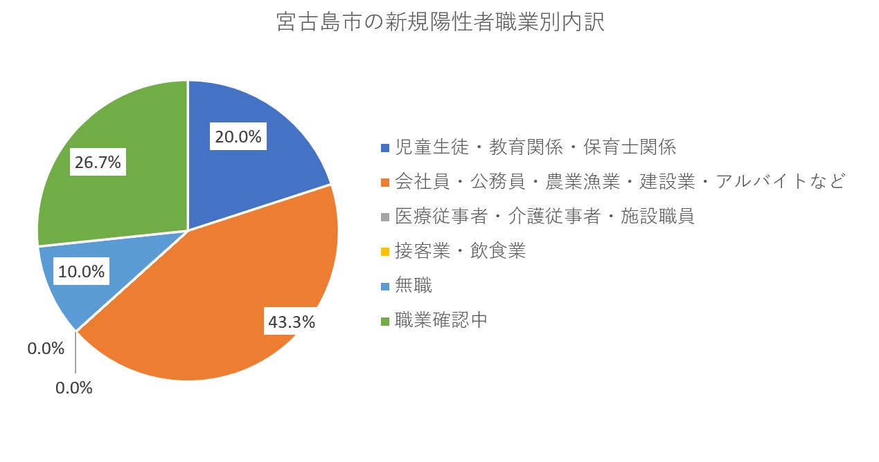 【速報・新型コロナ】10日、宮古島市の新規陽性者年代・職業別内訳