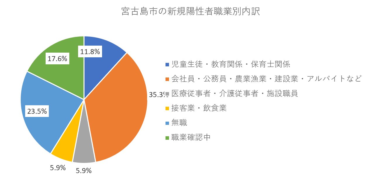 【速報・新型コロナ】12日、宮古島市の新規陽性者年代・職業別内訳