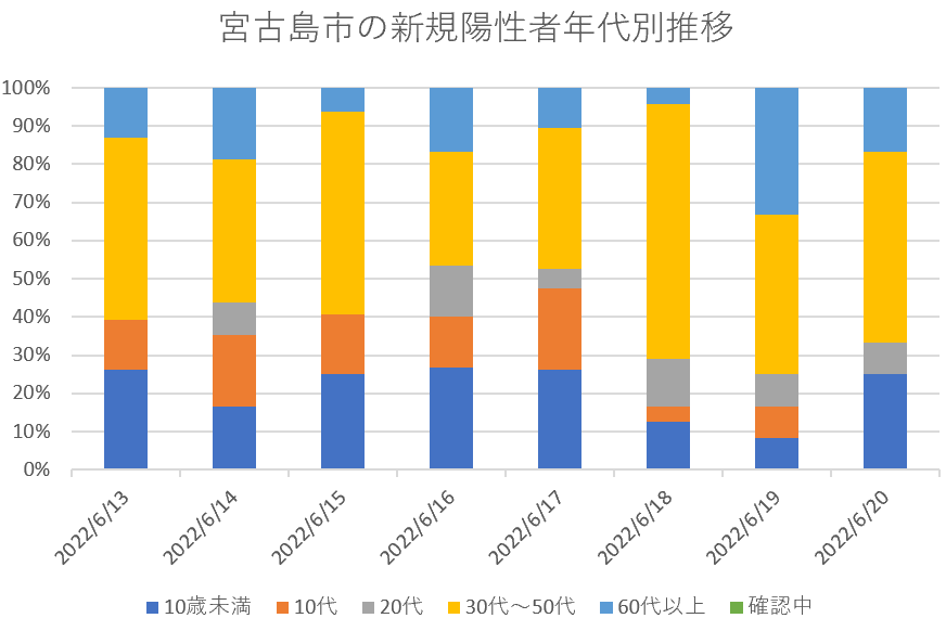 宮古島市の新規陽性者年代別内訳