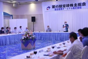 宮古空港ターミナル(下地義治社長)の定時株主総会が22日、市内のホテルで開かれ、第45期(2021年4月~22年3月)の事業報告や決算報告があり、総売上高は前期比10%増の7億7376万円。営業損失は「減価償却費・租税公課」の増加などにより2989万円の赤字で、赤字幅は前期から43・9%改善したことが報告された。