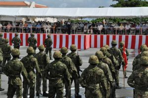 陸上自衛隊宮古島駐屯地で26日、宮古警備隊の創立3周年を記念する行事が行われ、観閲行進、装備品展示、音楽演奏会などがあった。警備隊長の伊與田雅一司令は「宮古圏域の皆さまの信頼に足る、心のよりどころになる駐屯地を目指し、精進することを誓う」と述べた。