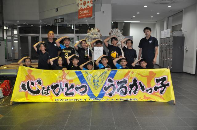 第42回全日本バレーボール小学生大会沖縄県大会が25、26日、豊見城市民体育館を主会場に行われ、男女混合ブロックに出場した砂川が3位に入った。26日夕、宮古島に戻り、宮古空港では父母や関係者が出迎え、健闘をたたえた。