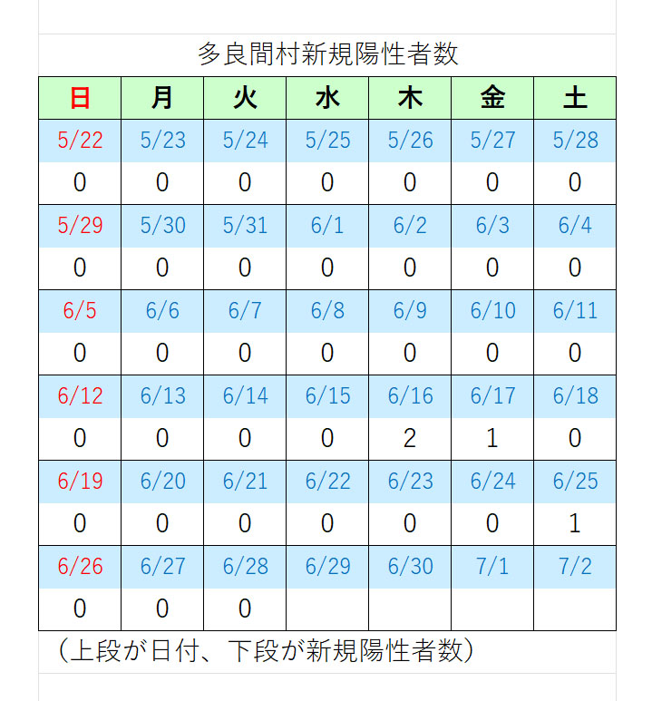 多良間村が居住地とみられる新規感染者0人(速報値)