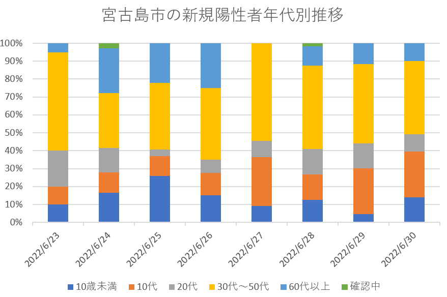 宮古島市の新規陽性者年代別内訳