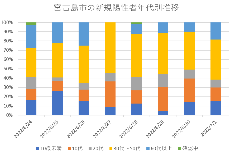 【速報・新型コロナ】1日、宮古島市の新規陽性者年代別内訳