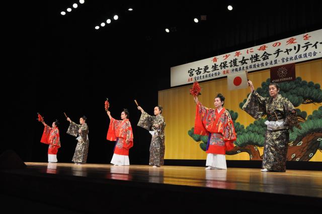 「青少年に母の愛を」をテーマにした第36回チャリティーショーささえ愛(主催・宮古更生保護女性会)が2日、マティダ市民劇場で行われた。舞踊研究所や日舞教室、協力団体などが華やかな演舞を披露。詰め掛けた大勢の観客を楽しませるとともに、次代を担う青少年の健やかな成長に向け、日ごろから連携して取り組んでいくことを参加者全員で再認識した。開催は3年ぶり。