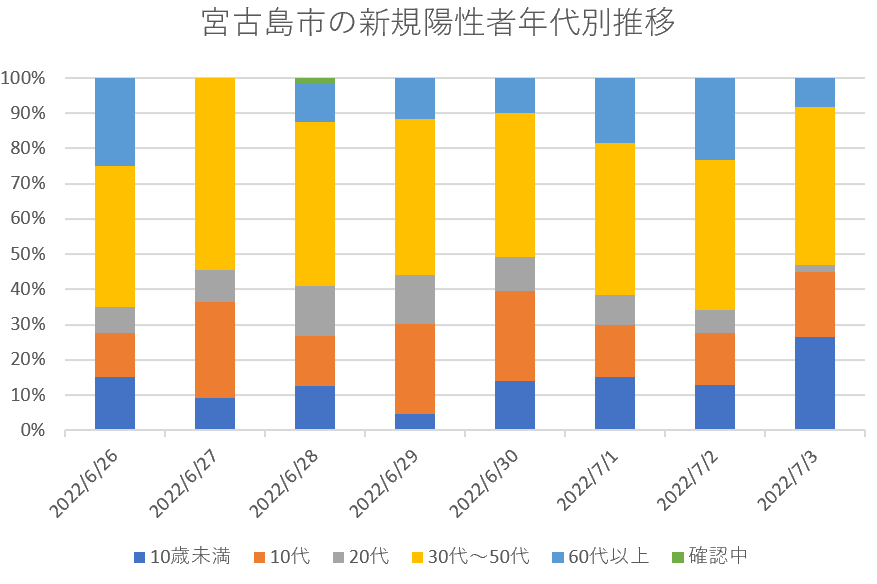 【速報・新型コロナ】3日、宮古島市の新規陽性者年代別内訳