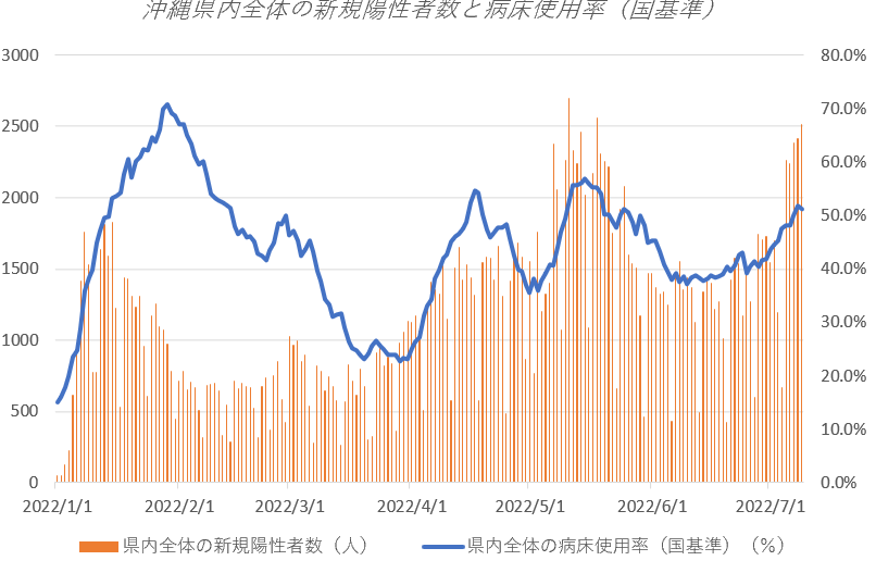 沖縄県内全体の病床使用率(国基準)51.2%