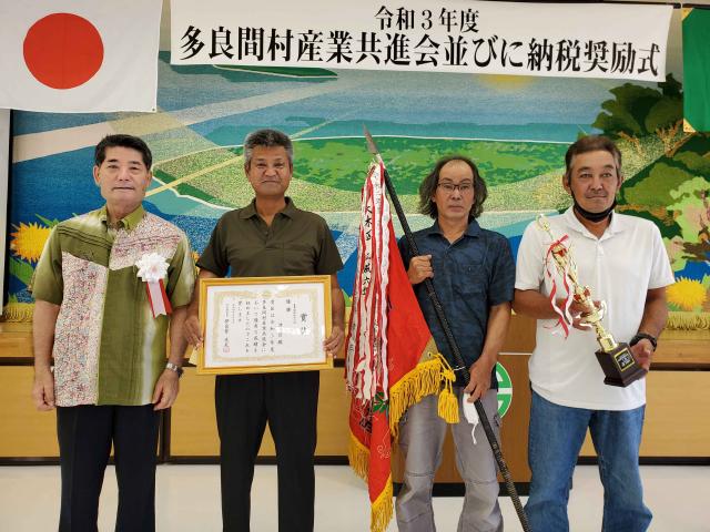 【多良間】多良間村の2021年度産業共進会と納税奨励式が7日、村コミュニティー施設で開催され、農業の各部門で優秀な成績を収めた農家を表彰した。農事と納税の両部門を合わせた総合成績と農事で津川区が、納税は宮良区が1位となった。