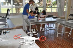 福嶺小学校に小学生の部活動では珍しいIT部が立ち上がり、12日、活動を始めた。IT技術を学び、将来に役立てることが目的で、この日は空中撮影などに利用されるドローンについて学んだ。自ら野菜を栽培し、ネット販売する構想もあり、ホームページの制作過程も学ぶ。