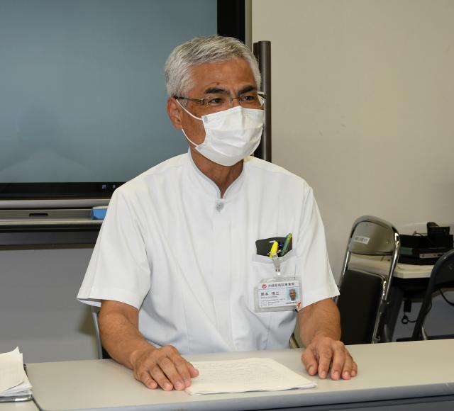 県立宮古病院(岸本信三院長)は、市内の新型コロナウイルス感染者数が増加していて、同病院でも職員や患者の感染が続き対応する必要があるとして、19日から外来診療の制限と病棟の縮小を実施している。診療制限は今回で5回目。同日、岸本院長が会見を開き、市民に理解と協力を求めるとともに、改めて感染拡大を防ぐための対策に努めるよう呼び掛けた。制限期間は8月1日までを予定。