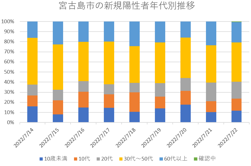 宮古島市の新規陽性者年代別内訳