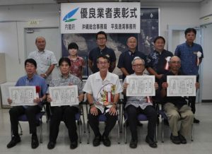 平良港湾事務所(照屋雅彦所長)は優良業者等表彰の優良業務部門に沖縄環境保全研究所(平良辰二社長)を、優秀業務技術者にレキオコンサルタントの湧川智さんを選定。26日に同事務所で表彰式を行い、受賞者に表彰状を授与した。優良下請け業者は極東建設(松原成忠社長)、優秀下請け技術者は同社の奥間敏浩さんが受賞した。