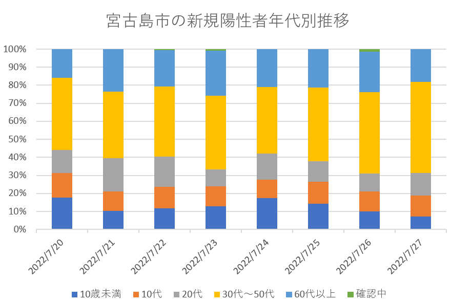 【速報・新型コロナ】27日、宮古島市と多良間村の新規陽性者年代別内訳