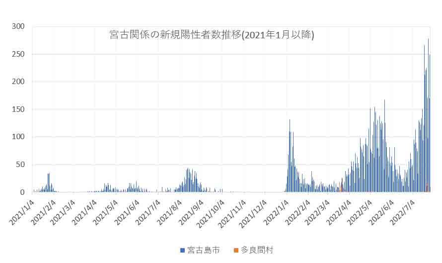 【速報・新型コロナ】28日 宮古島市の新規陽性249人、多良間村10人(速報値)
