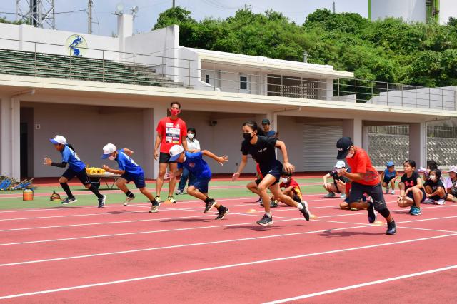 総合型地域スポーツクラブ「アスリート工房」(譜久里武代表)による陸上教室が28日、市陸上競技場で開かれた。マスターズ陸上で世界一に輝いた経験を持つ譜久里代表が、児童生徒らに直接指導した。譜久里代表は「誰でも必ず速くなれる。コツを学んで、それぞれの競技で生かしてほしい」と語った。