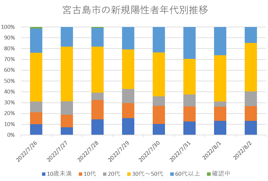 【速報・新型コロナ】2日、宮古島市の新規陽性者年代別内訳