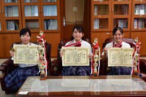 第69回全国高校ビジネス計算競技大会(珠算の部)がこのほど行われ、宮古総合実業高校商業科3年の大里亜希子さん、久貝香莉奈さん、平良林華さんが団体で6位入賞を果たした。学校によると県勢の最高順位を2年連続で更新した。種目別競技でも平良さんが読み上げ暗算で、大里さんが読み上げ算でそれぞれ優良賞に選ばれた。
