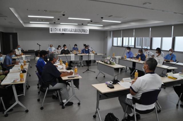 県市議会議長会(会長・久高友弘那覇市議会議長)の第176回定期総会が5日、市役所であり、2022年度補正予算や▽日米地域協定の抜本的な改定および在沖米軍基地の負担軽減について▽鉄軌道を含む新公共交通システムの導入について―などの議案を審議した。表彰もあり、宮古島市の上地廣敏議長が議員在職8年以上で表彰された。