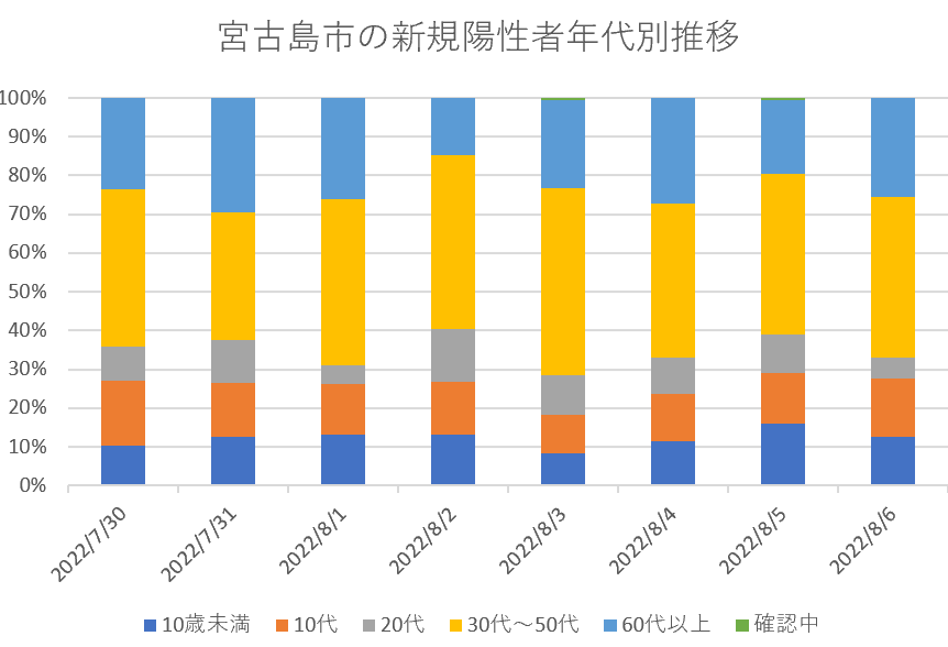 【速報・新型コロナ】6日、宮古島市と多良間村の新規陽性者年代別内訳