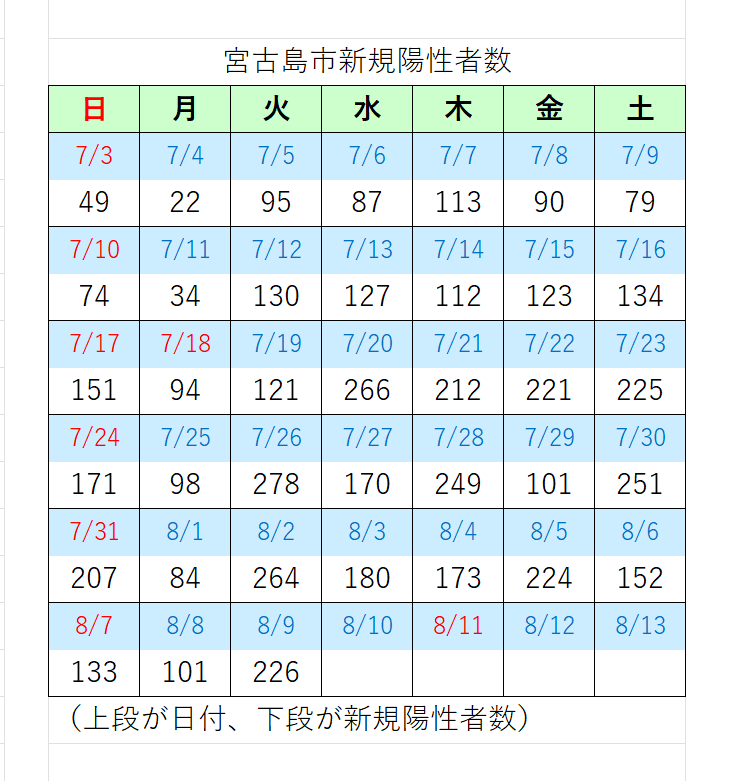 【速報・新型コロナ】9日 宮古島市の新規陽性226人、多良間村4人(速報値)