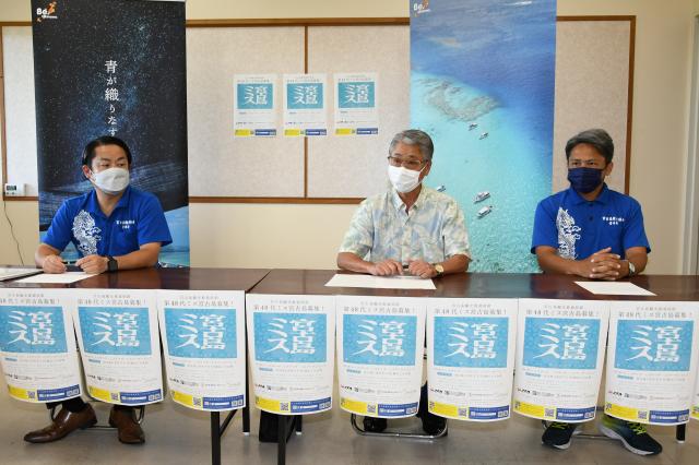 宮古島観光協会の吉井良介会長らは12日、会見を開き、14日を開催日としていた宮古島夏まつりが延期されたことにより、まつり内で実施予定だった第48代ミス宮古島発表会が同日に行えなくなったものの、14日から第47代から第48代に活動を引き継ぎ、ミスの公務をスタートさせると発表した。