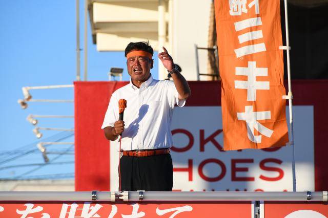 県知事選 沖縄変える知事を宮古から/下地氏が街頭演説