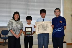 受け取った伊良部島中生徒会の仲間泰心会長は「素晴らしい賞を受賞し、うれしく思う。サシバが過ごしやすい島にするため、休息する森林の保護など私たちにできることに精いっぱい取り組みたい」と語った。