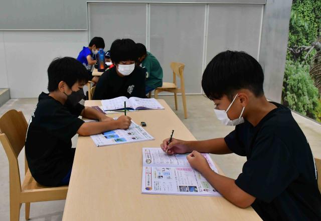 9月1日からの2学期を控え、市未来創造センターの市立図書館には子供たちがグループで集まり、宿題を無事に終わらせようと取り組んでいる。