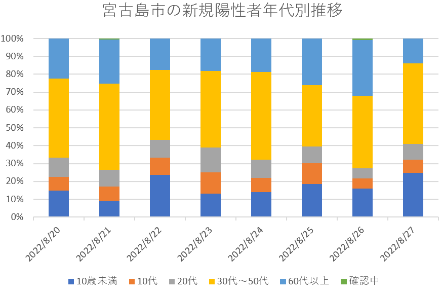 【速報・新型コロナ】27日、宮古島市と多良間村の新規陽性者年代別内訳