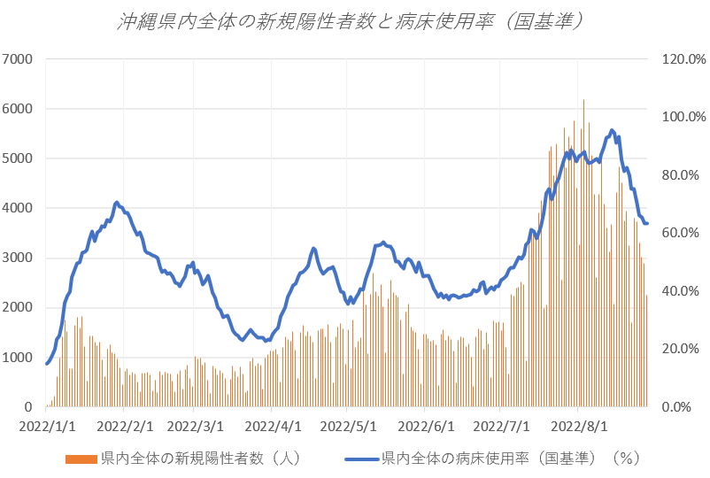 沖縄県内全体の病床使用率(国基準)63.3%