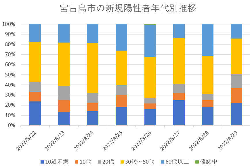 宮古島市の新規陽性者年代別内訳