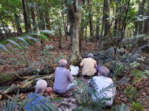 【多良間】多良間ではしばらくまとまった雨が降らず、農作物への影響が出始めていることから、各御嶽の司(ツカサ)や二才頭(ニサイガッサ)らが24年ぶりに「雨乞い祈願」を行った。8月29日に村内の計7カ所の御嶽でそれぞれ祈願した。