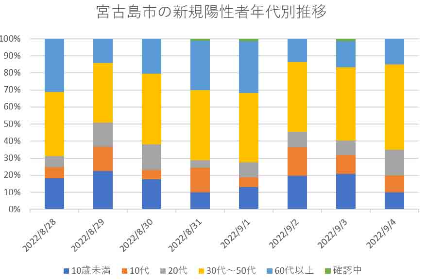 【速報・新型コロナ】4日、宮古島市の新規陽性者年代別内訳