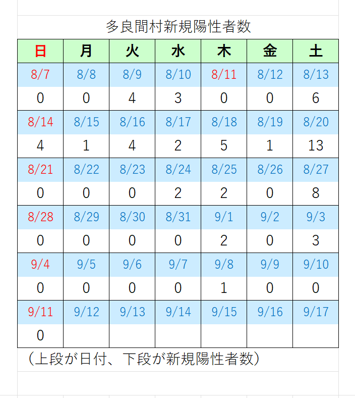 多良間村が居住地とみられる新規感染者0人(速報値)