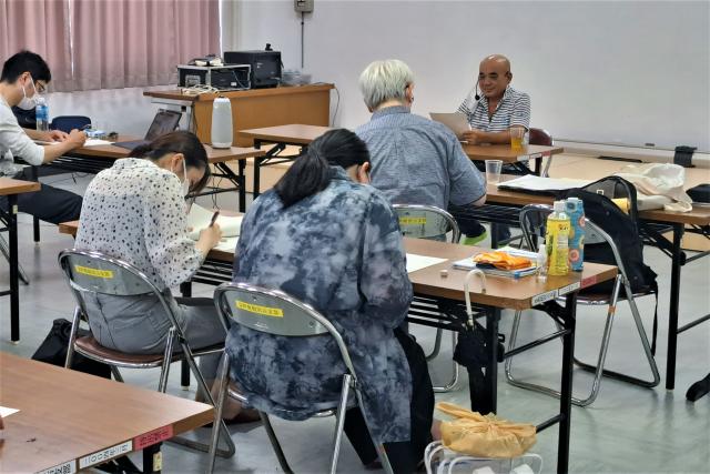 金沢大学人間社会学域人文学類は7日、宮古教育会館で宮古方言の実習授業を行った。今年の方言大会で最優秀賞に当たる市長賞を受賞した渡真利朗男さんを講師に招き、同大学の教授や参加した18人の学生たちが下地与那覇の方言を学んだ。