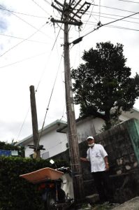 一緒に島まで行った従業員は、あまりの重労働にすぐに音を上げた。「休養のためと称して宮古本島に戻ると、もう現場には帰って来なかった」。一人残った宮里さんは、電柱を建てる穴を掘り1本ずつ設置していった。
