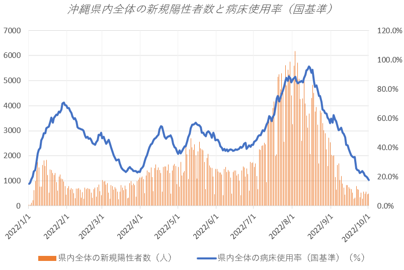 直近1週間の新規陽性者数(人口10万人当たり) 沖縄県216.08人全国30位