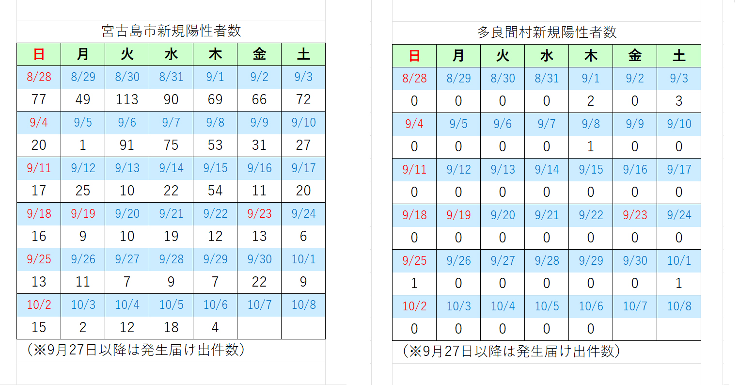 宮古島市の新規発生届け出4人、多良間村0人(速報値)