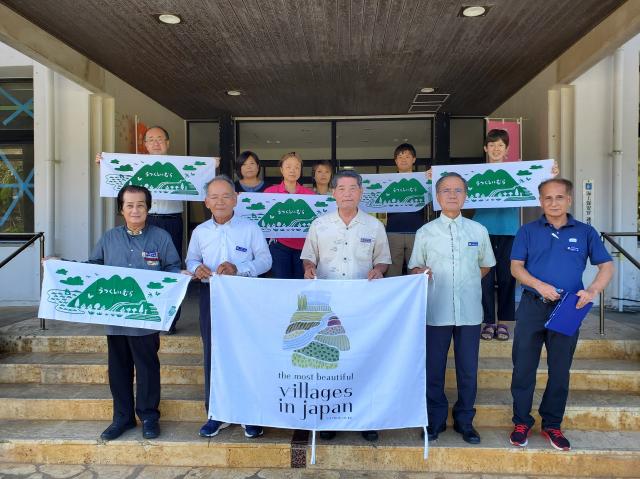 【多良間】10月4日は日本で最も美しい村連合が制定した「美しい村の日」。同連合会に加盟している村ではこの日にちなみ同日、連合旗を掲揚した。伊良皆光夫村長をはじめ村の職員らが参加し、役場に旗を掲げた。