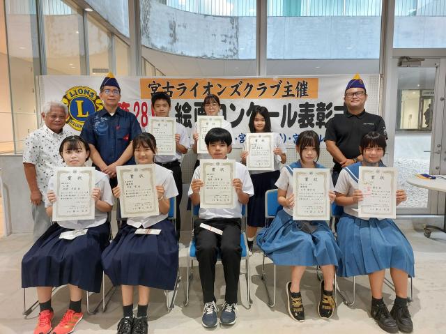 第28回中高生絵画コンクール(主催・宮古ライオンズクラブ)の表彰式が14日、市未来創造センターで行われた。風景画部門では上原美春さん(西辺中3年)が最優秀賞に選ばれた。また、入賞者のうち8人に賞状が手渡された。