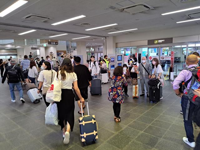 旅行代金を一部補助する観光需要喚起策「全国旅行支援」が開始されて初の週末となった15日、行楽地などは人であふれていた。宮古空港には、大きなスーツケースを引いた観光客らが多数訪れ、前浜ビーチはレンタカーで駐車場は満車状態だった。