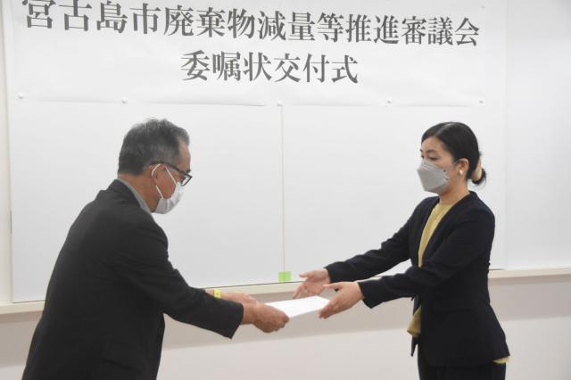 市の次期一般廃棄物処理基本計画の策定に向けた市廃棄物減量等推進審議会が18日、発足した。市クリーンセンター会議室で委嘱状交付式が行われ、伊川秀樹副市長が委員9人に委嘱状を交付。次期基本計画策定など3項目について諮問した。引き続き第1回審議会が開かれ、委員長に山川彩子沖国大准教授、副委員長に下地睦子市環境衛生局長が選出された。