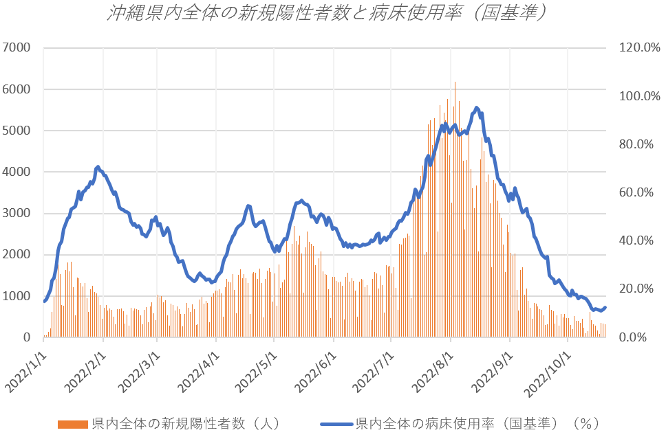 直近1週間の新規陽性者数(人口10万人当たり) 沖縄県130.76人全国47位
